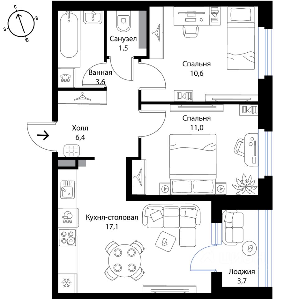 17,1 м²