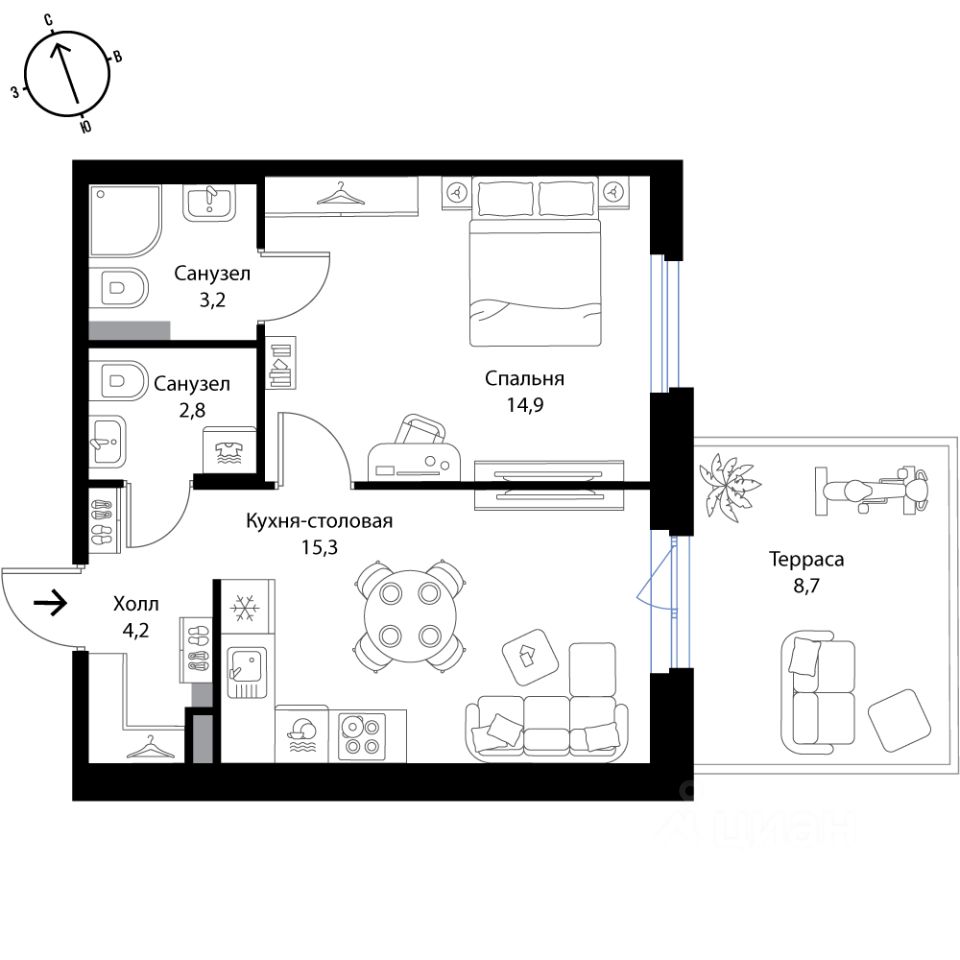 Продаётся 1-комнатная квартира в строящемся доме (Дом 2), срок сдачи: I-кв. 2026, общей площадью 43 кв.м., на 1 этаже. Новый жилой комплекс "Экография" от застройщика "ОХТА Групп - Петергоф" расположен по адресу Ленинградская область, Ломоносовский район, Низинское сельское поселение, деревня Ольгино.