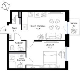 Продаётся 1-комнатная квартира в строящемся доме (Дом 2), срок сдачи: I-кв. 2026, общей площадью 38.8 кв.м., на 3 этаже. Новый жилой комплекс "Экография" от застройщика "ОХТА Групп - Петергоф" расположен по адресу Ленинградская область, Ломоносовский район, Низинское сельское поселение, деревня Ольгино.