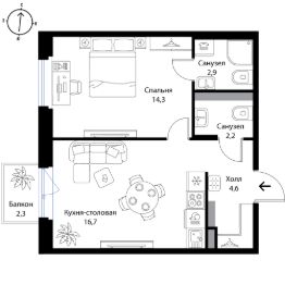 Продаётся 1-комнатная квартира в строящемся доме (Дом 2), срок сдачи: I-кв. 2026, общей площадью 41.4 кв.м., на 3 этаже. Новый жилой комплекс "Экография" от застройщика "ОХТА Групп - Петергоф" расположен по адресу Ленинградская область, Ломоносовский район, Низинское сельское поселение, деревня Ольгино.