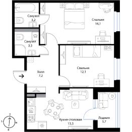 Продаётся 2-комнатная квартира в строящемся доме (Дом 1), срок сдачи: II-кв. 2026, общей площадью 57.1 кв.м., на 3 этаже. Новый жилой комплекс "Экография" от застройщика "ОХТА Групп - Петергоф" расположен по адресу Ленинградская область, Ломоносовский район, Низинское сельское поселение, деревня Ольгино.