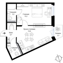 15,1 м²