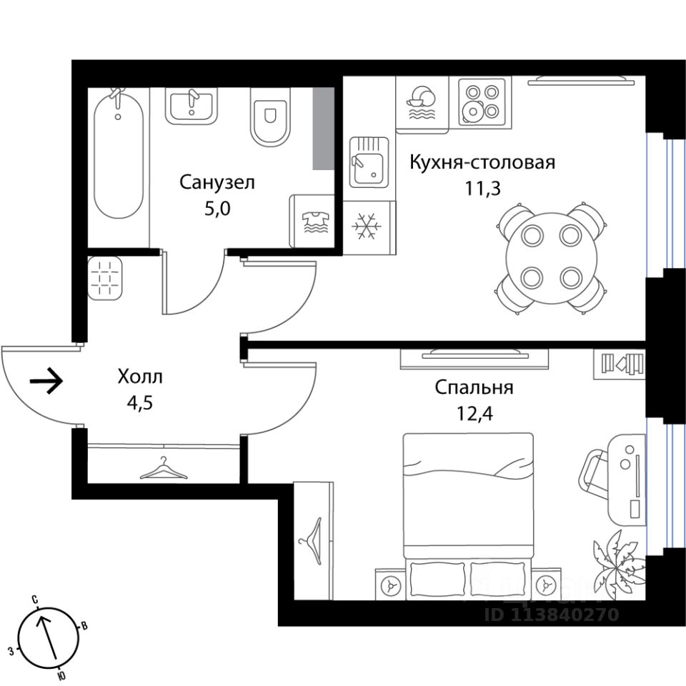 11,3 м²