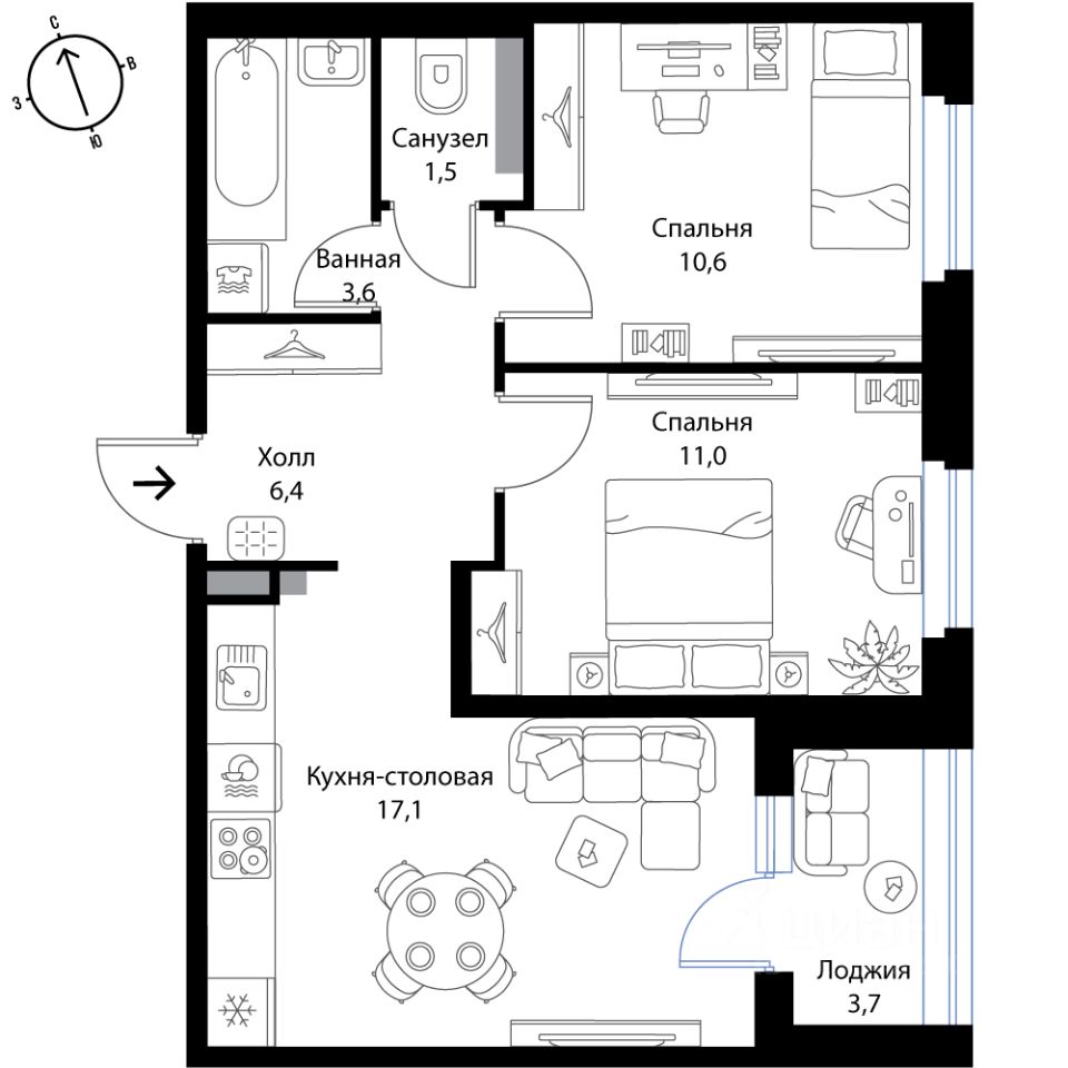 1 лоджия