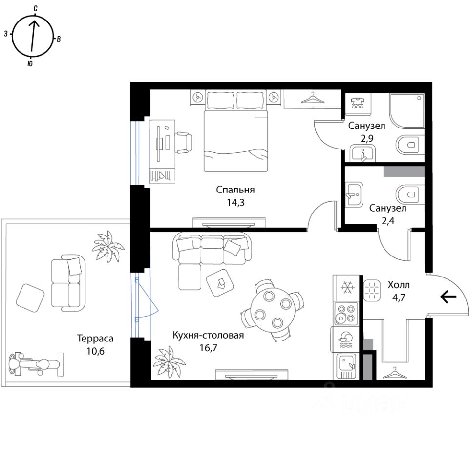 Продаётся 1-комнатная квартира в строящемся доме (Дом 1), срок сдачи: II-кв. 2026, общей площадью 44.2 кв.м., на 1 этаже. Новый жилой комплекс "Экография" от застройщика "ОХТА Групп - Петергоф" расположен по адресу Ленинградская область, Ломоносовский район, Низинское сельское поселение, деревня Ольгино.