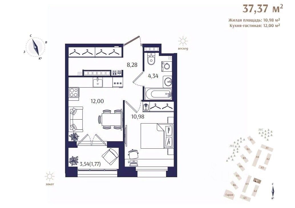 Функциональная однокомнатная квартира - Формат Light, которая подойдет для комфортного проживания небольшой семьи.