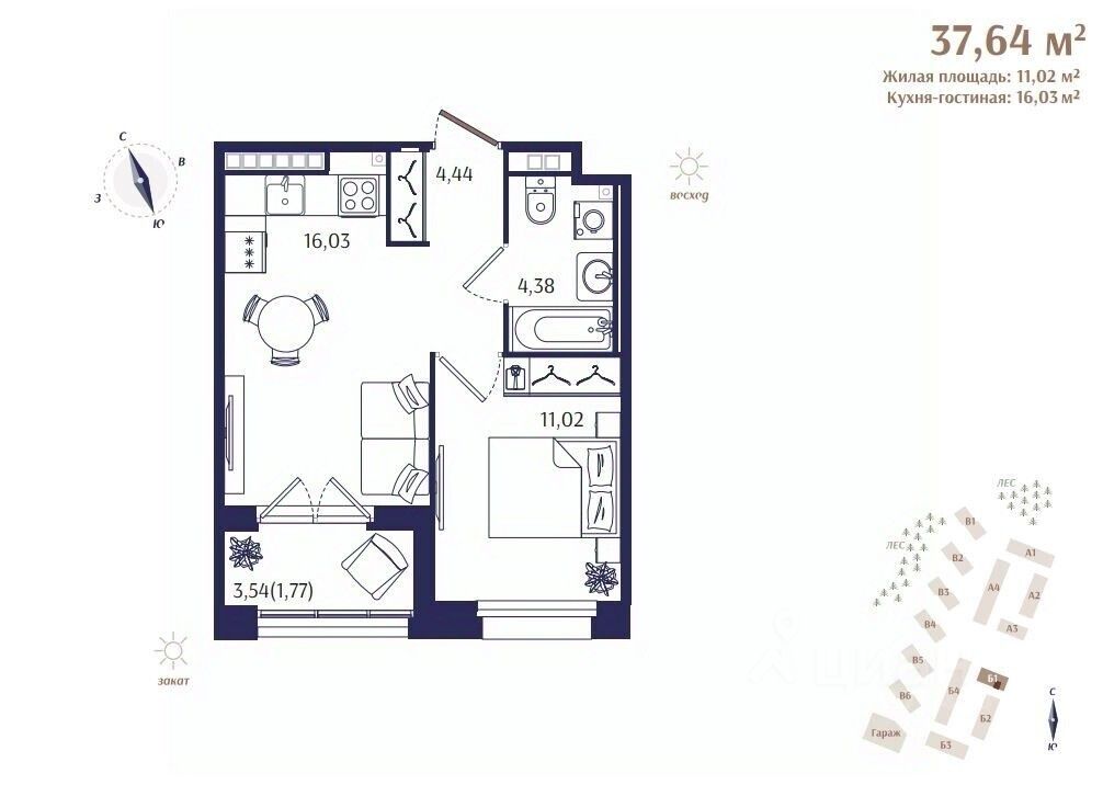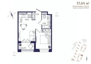 Функциональная однокомнатная квартира - Формат Light, которая подойдет для комфортного проживания небольшой семьи.