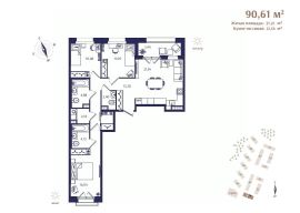 Просторная трехкомнатная квартира - Family- формат, в которой продумана каждая деталь для проживания семьи.