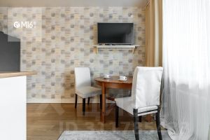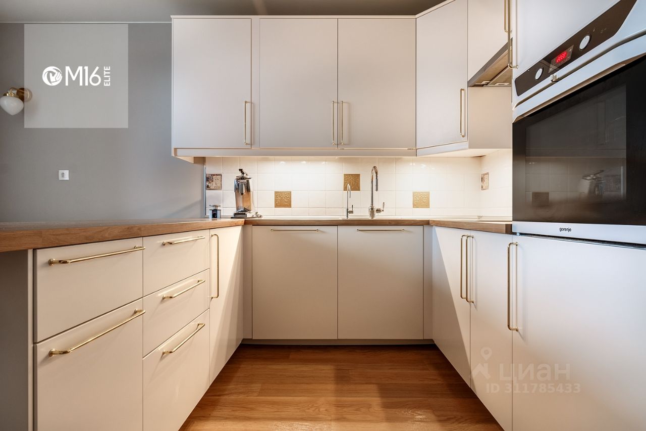 Жилая площадь светлая и просторная, выполнен качественный ремонт, продается с мебелью. В квартире две лоджии, выходящие на разные стороны, с видом во двор. Кухня-гостиная площадью 19 м² правильной формы. Две изолированные комнаты: 23,6 м² и 20,5 м². Ванная комната — 5,8 м², а также удобная постирочная — 2 м².