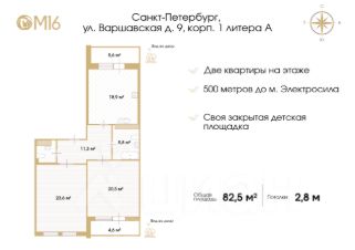 Продается просторная 2-комнатная квартира площадью 82,5 м², расположенная на 4 этаже жилого дома по адресу: ул. Варшавская, д. 9.