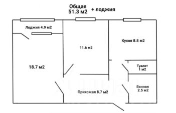 Квартира находится на 7 этаже десятиэтажного дома, 1998 года постройки. Площадь квартиры 51.3 м2, состоит из: