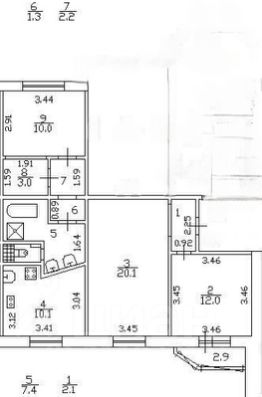 Размер комнат 12.0, 20.1 и 10 кв.м. Комнаты правильной формы.
