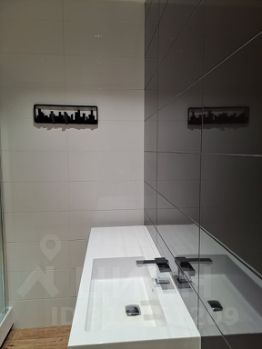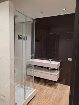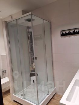 Зеркальная дверь в санузел  состоит из трех  полотен    Раковина белого цвета из литого мрамора  душевая с  САУНОЙ   и музыкой ( Италия) ,   самозакрывающийся немецкий унитаз