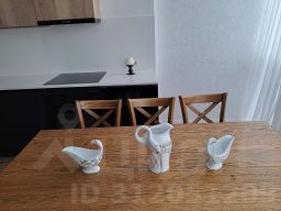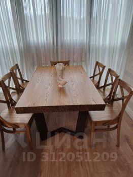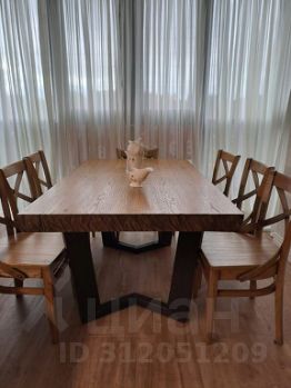 На просторной кухне расположен дубовый стол и восемь стульев также из дуба   Кухонный гарнитур- заказная позиция    Имеется встроенная немецкая бытовая техника - холодильник,  посудомойка , стиральная машина , духовка ,  микроволновка , вытяжка  Очень много мест хранения   .    Мраморная столешница и фартук