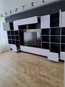 Гостиная имеет  модульную стенку  с зонами открытого и закрытого типа     В стенке отведено место т под домашний кинотеатр