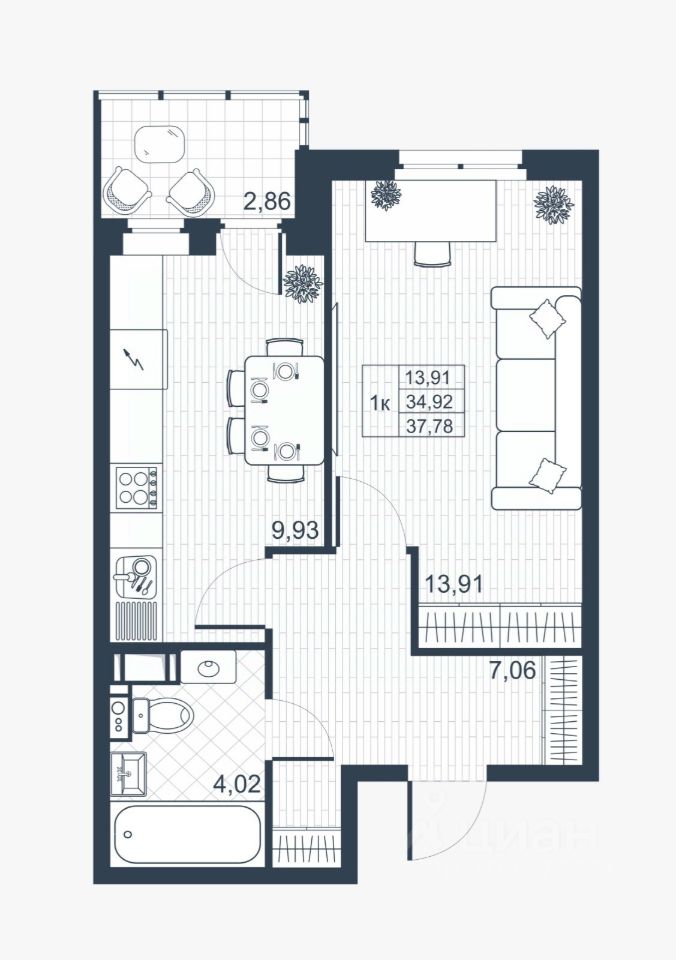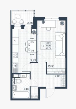 Общая площадь34,7 м²