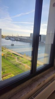 Планировка удобная и функциональная: просторная прихожая, с выделенной зоной для размещения гардеробного шкафа, большая кухня-гостиная (37,5 кв.м.) с шикарным видом на воду, три просторные видовые спальни. Квартира очень светлая и имеет видовые характеристики.