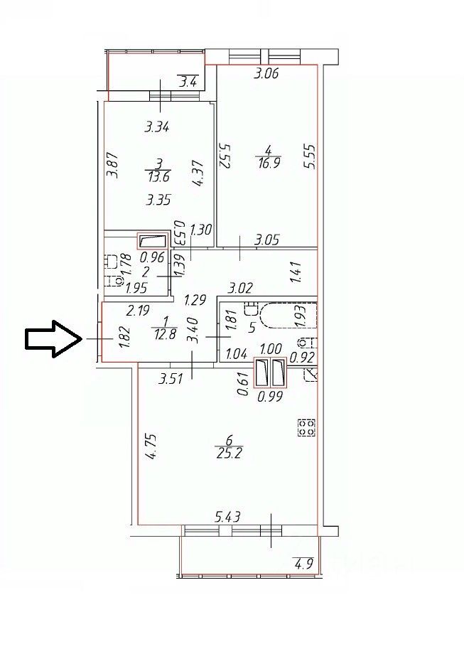 Балкон спальни и окна второй спальни выходят в сторону администрации Московского района. Квартира без отделки.