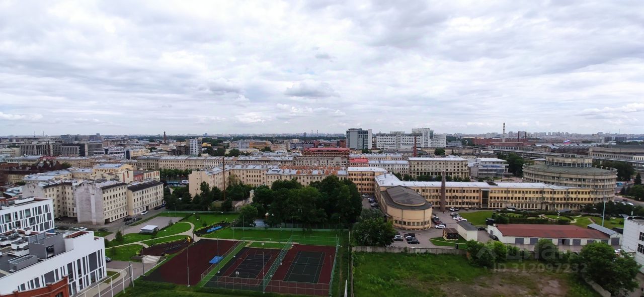 Высокий 16-й этаж, с которого открывается красивый панорамный вид на Санкт-Петербург.