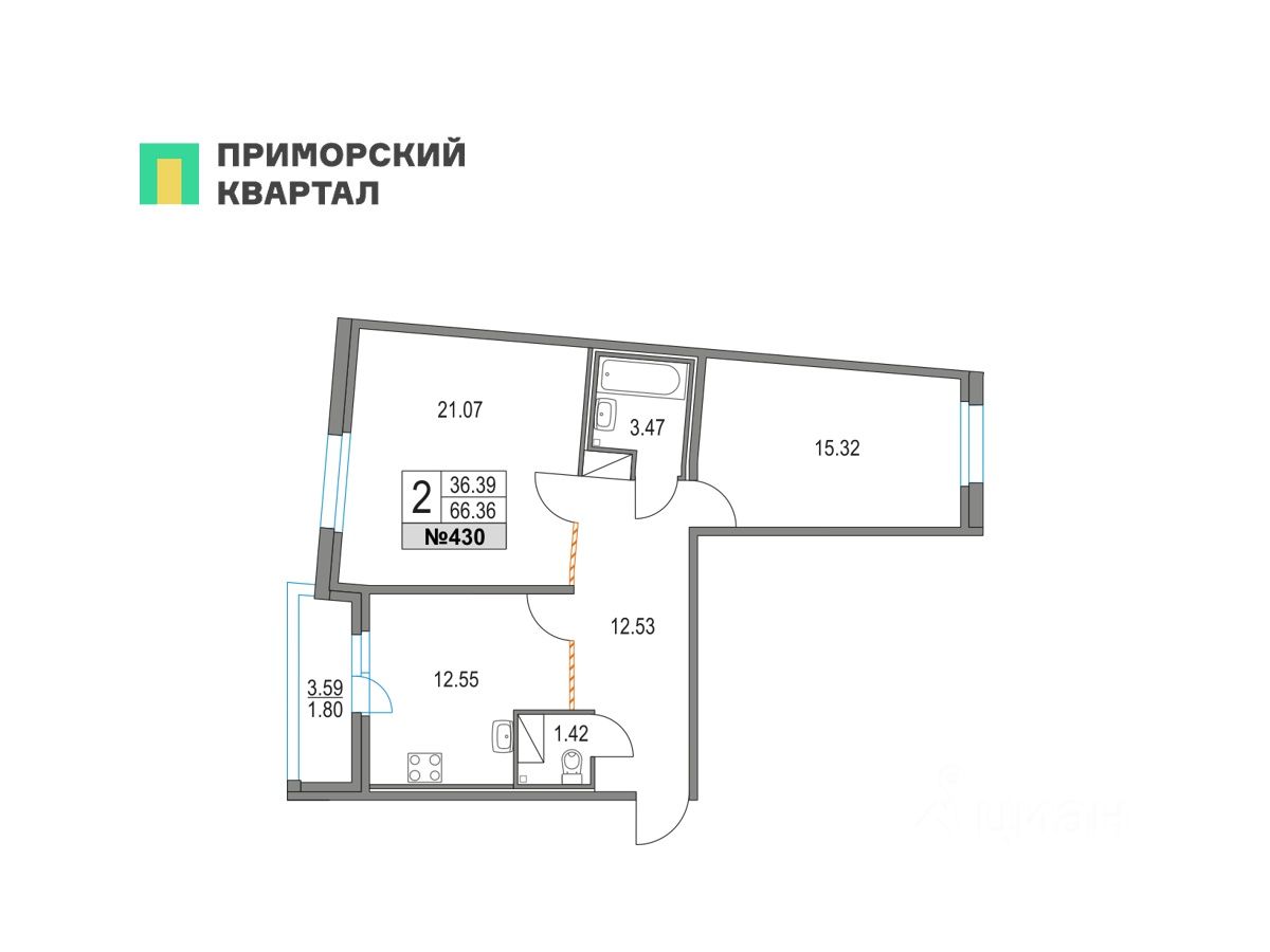 Продается 2 - комнатная квартира общей площадью 66.36 кв.м., на 13 этаже в построенном и заселенном корпусе 42 (год сдачи: 2024 г.)