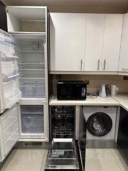Остается кухонный гарнитур со встроенной импортной техникой: холодильник; варочная панель; посудомоечная машина, стиральная машина и др. Квартира удобной планировки укомплектована всей необходимой мебелью, техникой и оборудована местами для работы, отдыха и хранения.