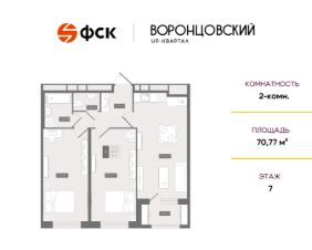 Цена со скидкой до 30% в прямой продаже от застройщика — только в этом месяце. Беспроцентная рассрочка. 2-к квартира в ЖК UP-квартал "Воронцовский" на 7-м этаже. Общая площадь 70,77. Чистовая отделка.