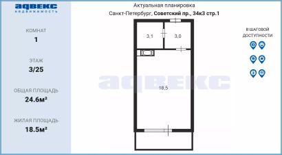 В прямой продаже красивая уютная квартира-студия на берегу Невы в Невском районе Санкт-Петербурга в ЖК комфорт-класса "Невские паруса".