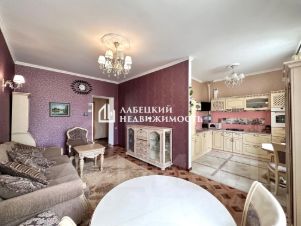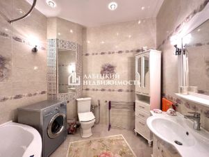 Квартира двусторонняя, находится на четвертом этаже пятиэтажного дома. Окна выходят на красивые цветущие деревья. Высота потолка 3м. Общая площадь 81м2 в которые входят: просторная кухня-гостиная 28.9м2, спальная комната, гостиная, гардеробная 4м2 и совмещенный санузел 9м2.