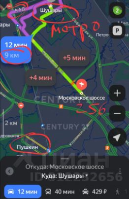 Также на транспорте: до метро Шушары- 12мин., метро Купчино -15мин.