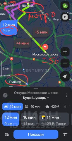 Также на транспорте: до метро Шушары- 12мин., метро Купчино -15мин.