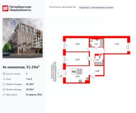 Уникальная, функциональная европланировка, большая кухня-гостиная 19.3 м², просторная прихожая 13.96 м². Общая площадь квартиры - 92.29 м², жилая 49.28 м², высота потолка 3 м.