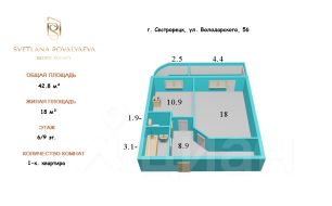 Oбщaя площадь cоставляeт 42,8 кв.м.