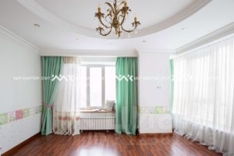 Квартира выходит на три стороны. Через огромные окна открывается панорама города, завораживающие виды в любое время суток! А для того, чтобы удобно было любоваться видами из детской здесь предусмотрены подоконники-скамьи с удобными подушками)