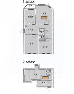 Комнаты - 19,3+15,9+11,8+14,1 кв.м.