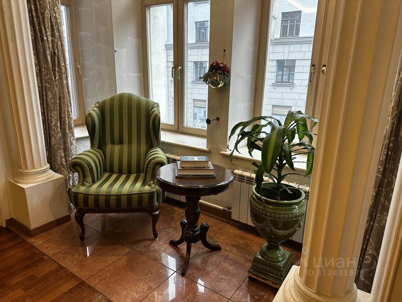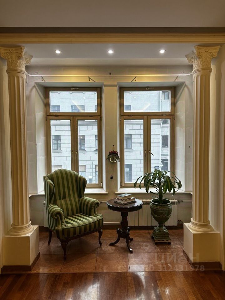 Квартира имеет дизайнерский ремонт и продуманную планировку. Стены отделаны гобеленами, панно и мозаикой. Просторная кухня площадью 18.2 кв. м станет отличным местом для семейных обедов и встреч с друзьями. Корпусная встраиваемая техника SMEG. В квартире есть два санузла — один совмещенный и один отдельный, что добавляет удобства. Также имеется балкон, где можно наслаждаться свежим воздухом и видом на окрестности. В гостиной имеется большой эркер с видом на Невский проспект.