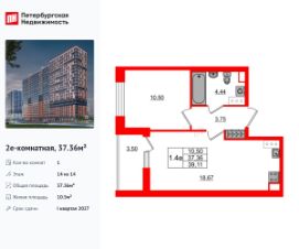 Удобная, классическая, функциональная европланировка, большая кухня-гостиная 18.66 м², вместительная прихожая 3.87 м². Общая площадь квартиры - 37.36 м², жилая 10.5 м², высота потолка 3 м.