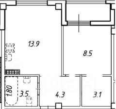ПОСЛЕДНЯЯ ПОЛНОЦЕННАЯ 1-к КВАРТИРА (без колонн посередине)