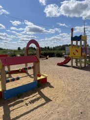 Напротив дома - детская площадка и небольшой магазин, у соседних домов - еще 2 детских площадки.