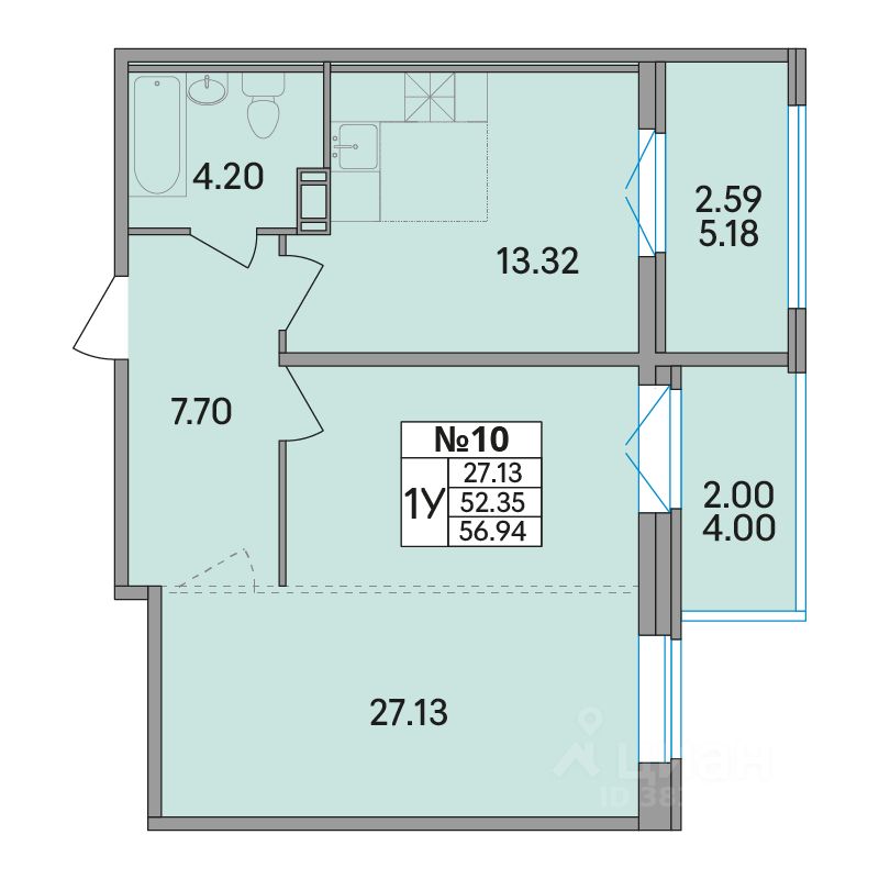 Продаётся 1-комнатная квартира в строящемся доме (Корпус 4), срок сдачи: I-кв. 2026, общей площадью 56.94 кв.м., на 4 этаже. Жилой комплекс "Рождественский квартал" представляет собой проект квартальной застройки, расположенный во Всеволожском районе Ленобласти, в дер. Скотное. Это комплексно сформированная по современным стандартам застройка с центральными коммуникациями и собственной развитой инфраструктурой.