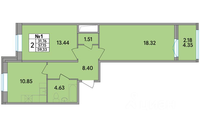 Продаётся 2-комнатная квартира в строящемся доме (Корпус 4), срок сдачи: I-кв. 2026, общей площадью 59.33 кв.м., на 2 этаже. Жилой комплекс "Рождественский квартал" представляет собой проект квартальной застройки, расположенный во Всеволожском районе Ленобласти, в дер. Скотное. Это комплексно сформированная по современным стандартам застройка с центральными коммуникациями и собственной развитой инфраструктурой.