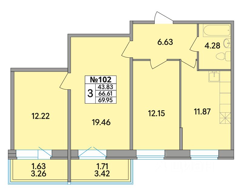 Продаётся 3-комнатная квартира в строящемся доме (Корпус 4), срок сдачи: I-кв. 2026, общей площадью 69.95 кв.м., на 2 этаже. Жилой комплекс "Рождественский квартал" представляет собой проект квартальной застройки, расположенный во Всеволожском районе Ленобласти, в дер. Скотное. Это комплексно сформированная по современным стандартам застройка с центральными коммуникациями и собственной развитой инфраструктурой.