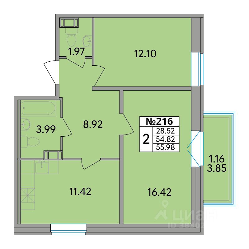 Продаётся 2-комнатная квартира в строящемся доме (Корпус 4), срок сдачи: I-кв. 2026, общей площадью 55.98 кв.м., на 6 этаже. Жилой комплекс "Рождественский квартал" представляет собой проект квартальной застройки, расположенный во Всеволожском районе Ленобласти, в дер. Скотное. Это комплексно сформированная по современным стандартам застройка с центральными коммуникациями и собственной развитой инфраструктурой.