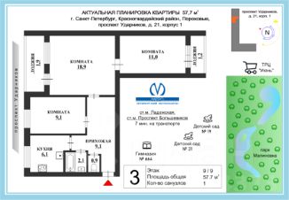 Квартира общей площадью - 57,7 кв .м. + 2 лоджии,