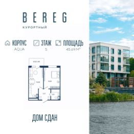 Апартамент 468 площадью 45,69 кв.м. в корпусе Aqua с видом во двор