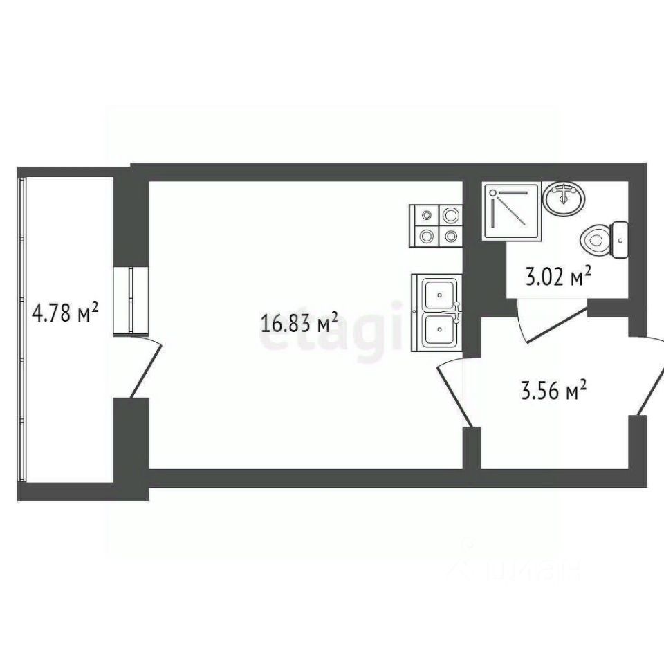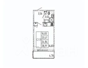 Общая площадь без балкона - 23,41 кв.м.
