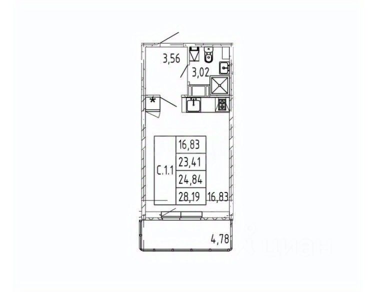 Общая площадь с балконом - 28,19 кв.м.