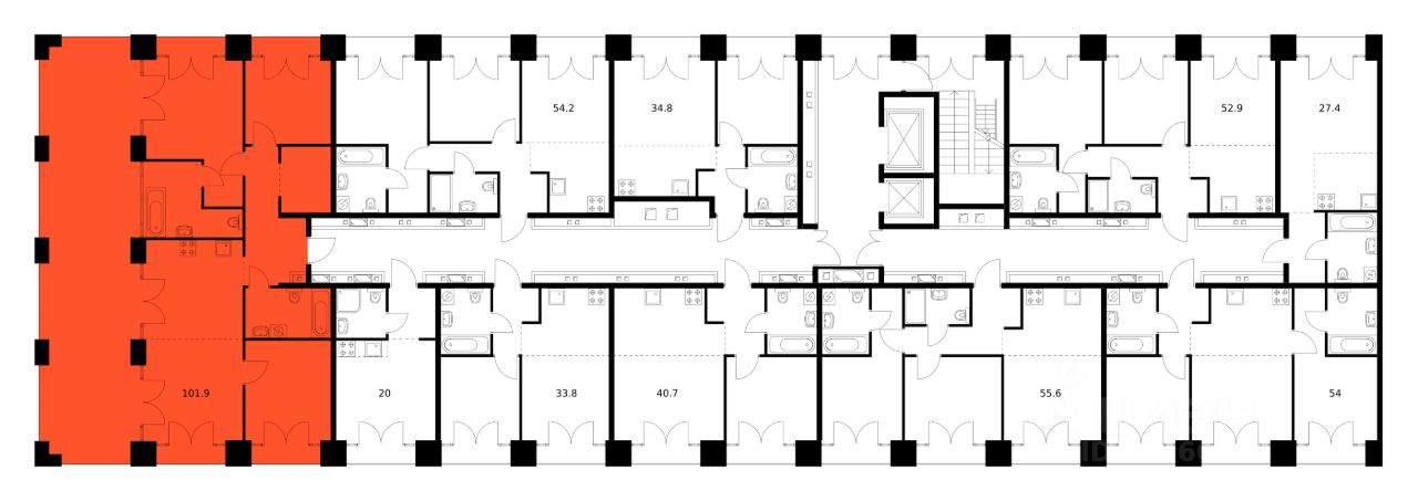 Продаётся 3-комн. квартира площадью 103,5 кв.м на 9 этаже 9 этажного дома (Корпус 2.2, Секция 13) проекта ПИК Лермонтовский 54. Светлый просторный подъезд на уровне земли, функциональная планировка, большие окна, без отделки.