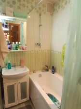 Квартира в хорошем состоянии, с двумя изолированными комнатами 17 кв.м. и 14 кв.м, с большим открытым балконом. Полы в комнатах с родным паркетом, на всех окнах поставлены стеклопакеты. Просторная кухня с мебельным кухонным гарнитуром, который останется новым собственникам. Ванна и туалет раздельные, ванна облицована настенным и напольным кафелем. В санузле пластиковые панели. Сан.техническое оборудование в исправном состоянии. Была произведена замена труб холодной и горячей воды. Имеется технический этаж. Крыша в доме новая, протечек нет. В квартире остается частично мебель, бытовая техника по договоренности.