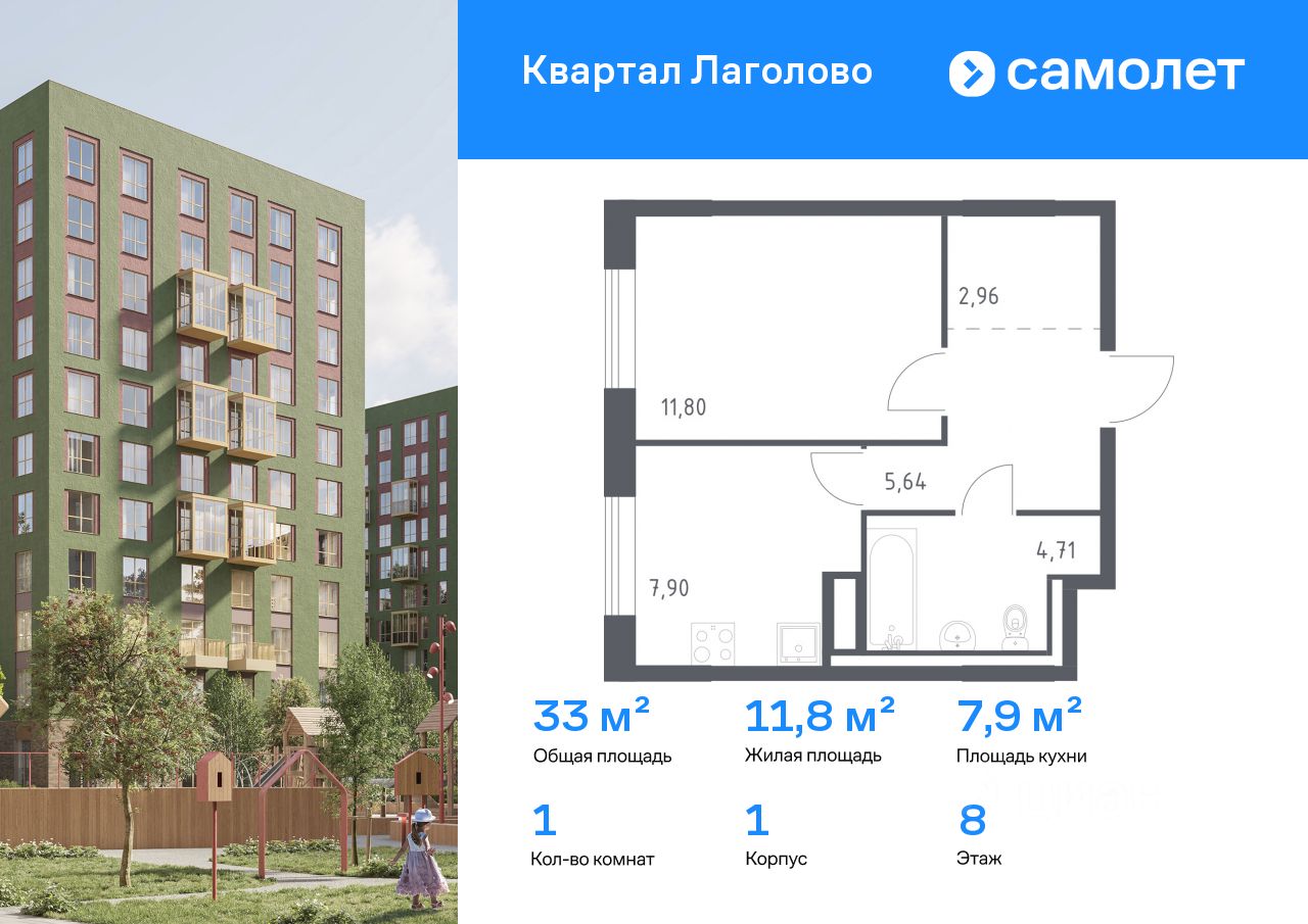 Строим кварталы для жизни с заботой о будущем. Предлагается 1-комнатная квартира комфорт-класса 33,01 кв.м в корпусе 1 на 8 этаже, в ЖК "Квартал Лаголово"
