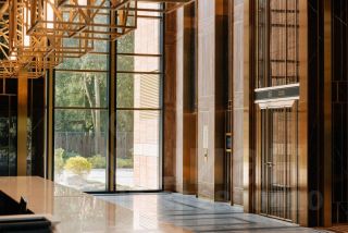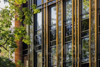 "Институтский, 16" - 20-этажный П-образный дом в стиле американского ар-деко по проекту архитекторов бюро "Евгений Герасимов и партнеры". Здание высотой 75 м размещено в центре участка площадью 0,63 га. Строгий геометрический рисунок фасадов образует чередование равных по высоте и ширине окон и